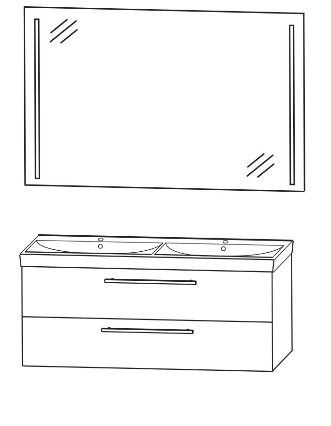 Puris Quada Badmöbel-Set kombinierbar 120 cm breit SETQU2D1/2 mit Doppelwaschtisch -30%