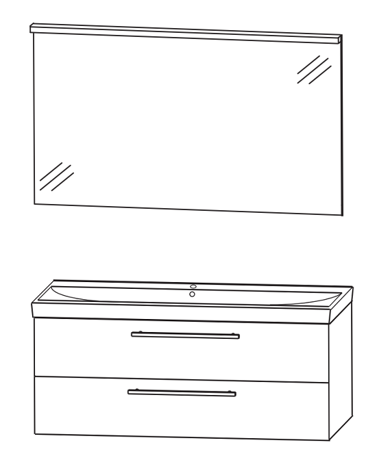 Vervollständigt wird das Puris Protection1 Badmöbelset in der Breite von 120 cm durch einen geräumigen Flächenspiegel mit waagerechter LED-Beleuchtung inklusive Kippschalter.
