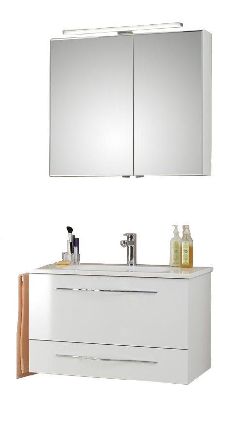 Durch die einfache Auswahlmöglichkeit können Sie auch bequem optional noch einen moderner Spiegel oder Spiegelschrank dazu konfigurieren. Dabei stehen Ihnen unterschiedliche Spiegelschrankvarianten zur Verfügung, welche sich in den Beleuchtungselemente unterscheiden.