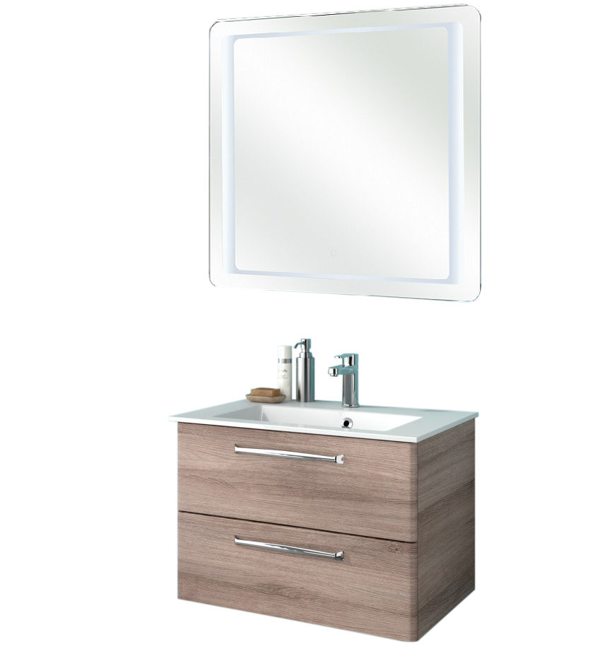 Abgerundet wird das Pelipal TrenTino Badmöbelset mit einem filigranen, aber trotzdem sofort ins Auge stechenden Badezimmerspiegel. In der Spiegelfläche eingearbeitet eine langlebige LED-Beleuchtung. Diese ist entweder nur seitlich oder als ganze Spiegelumrandung möglich. Der Pelipal TrenTino Badspiegel hat eine Breite von 70 cm, eine Höhe von 70 cm und eine Tiefe von 3 cm.