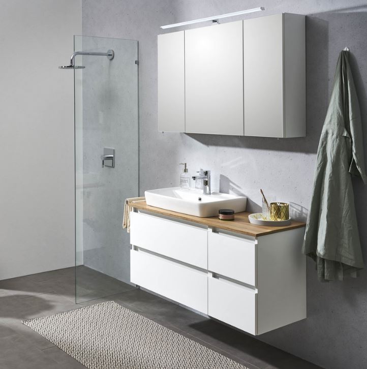 Pelipal 4005 Badmöbel Set 117 cm breit mit Spiegelschrank inkl. LED-Kranzbodenbeleuchtung -32%