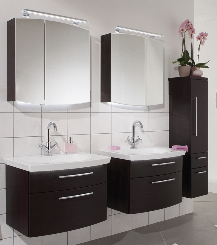 Optional können Sie zu Ihrem neuen Badmöbel Set auch einen passenden Spiegelschrank wählen. Hier bietet Ihnen Puris eine große Auswahl an verschiedenen Modellen in unterschiedlichen Preisklassen und Stilen an. Die Badspiegel sind je nach Modell mit doppelt verspiegelten Türen oder einfachen Spiegeltüren ausgestattet. Im Inneren des Schrankes befinden sich Glaseinlegeböden, die den Korpus optimal unterteilen und somit für Ordnung in Ihrem Badezimmer sorgen. Die Spiegel sind auch teilweise mit Aufsatzleuchten oder einer Beleuchtung versehen, welche in die Spiegelfläche integriert ist. Mit der optional bestellbaren Emotion-Beleuchtung können Sie die Lichtfarbe ändern und das Licht Ihrem Befinden und Ihrer Stimmung anpassen. Bei allen Spiegelschränken können Sie zudem auch noch eine Waschplatzbeleuchtung dazu bestellen, welche sich unter dem Spiegelschrank befindet und den Waschtisch zusätzlich beleuchtet. Mit dem innenliegenden Schalter- Steckdosen-Modul können Sie die Lichter steuern.