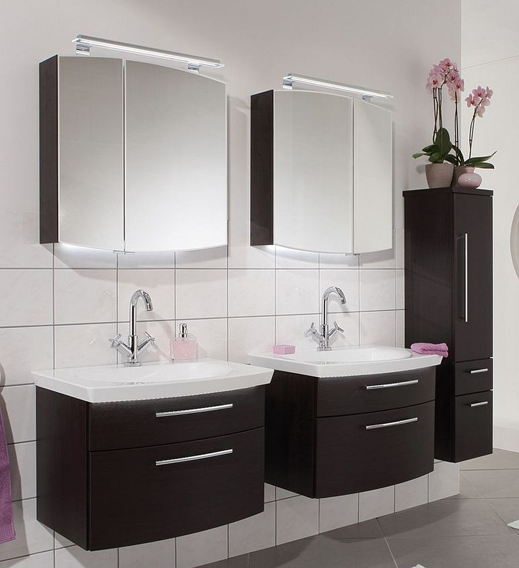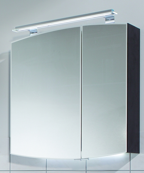 Die beiden Spiegeltüren haben einmal eine Breite von 446 mm und eine Breite von 246 mm. Sie können wählen, ob sich die schmale Spiegeltür rechts oder links befinden soll. Die verspiegelten Türen sind serienmäßig mit einer Dämpfung ausgestattet, die für ein leises Öffnen und Schließen der Türen sorgt. Durch die gerundete Form der Türen passt sich der Badspiegel dem geschwungenen Unterschrank optimal an und zieht alle Blicke auf sich.
