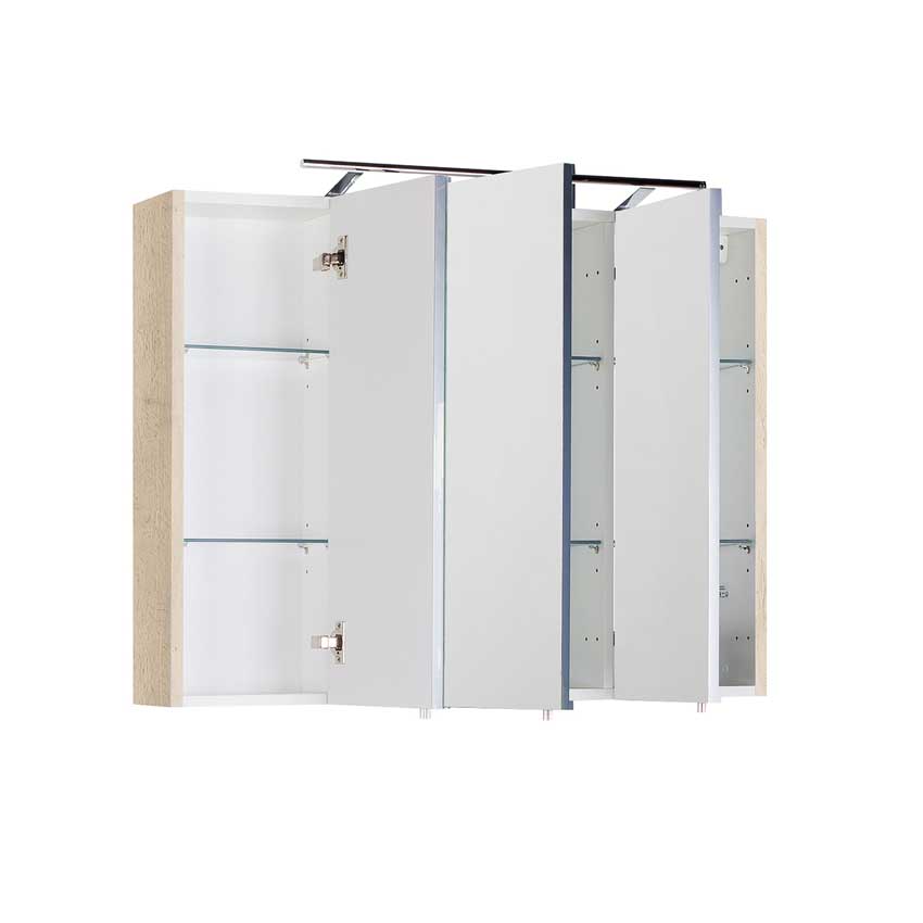Spiegelschrank mit 3 Spiegeltüren, LED-Beluchtung inklusiv, 90 cm (SLLB9)