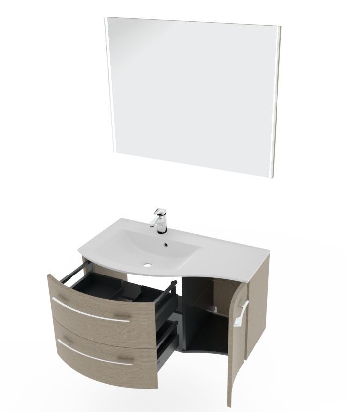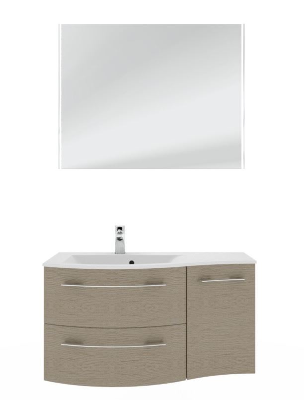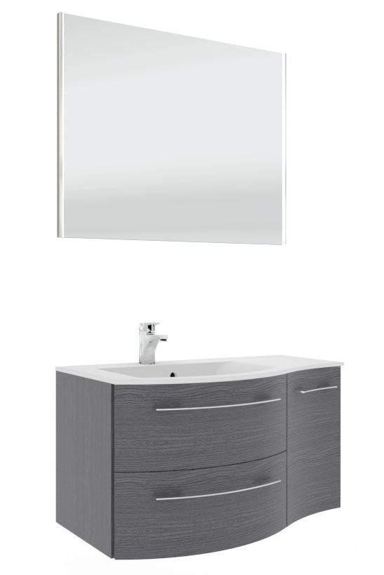 Marlin 3280cara Badmöbelset 90 cm / mit Flächenspiegel - Waschtisch links