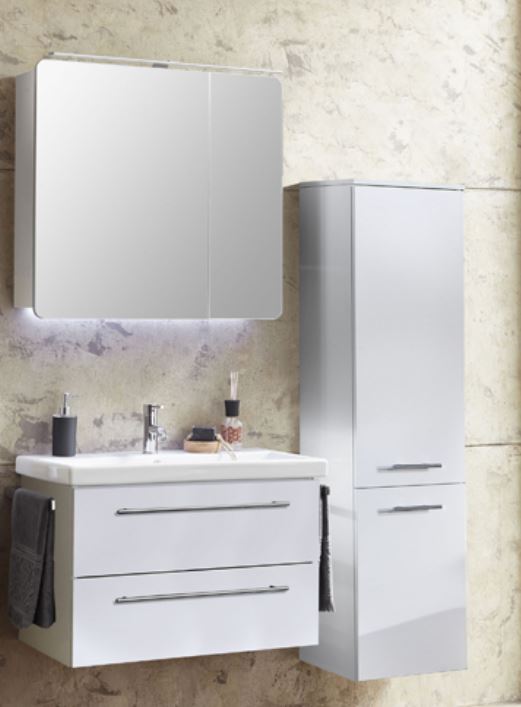 Optional stehen Ihnen zwei erstklassige Spiegelschränke zur Auswahl. Beide haben zwei asymmetrische Türen, wobei lediglich der FSPSR80S Spiegelschrank Innenspiegel besitzt. Wenn Sie Ihren Waschplatz in einem hellen Schein erstrahlen lassen möchten, so ist die Marlin Unterbaubeleuchtung der Spiegelschränke ideal hierfür.