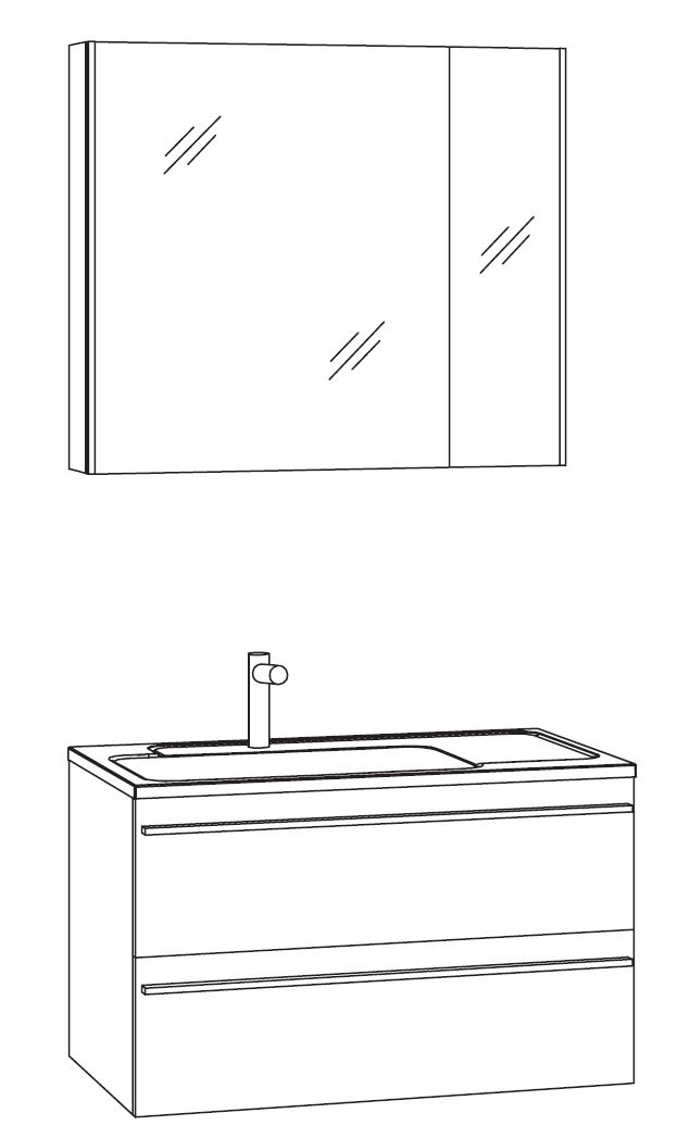 Das 80 cm breite Badmöbel Set aus der Badserie Marlin Bad 3250 besteht aus einem Spiegelschrank, einem Waschtisch und einem Waschtischunterschrank. Dank der Gesamtbreite von 80,5 cm lässt sich das Badset in kleine bis mittelgroße Bäder integrieren.