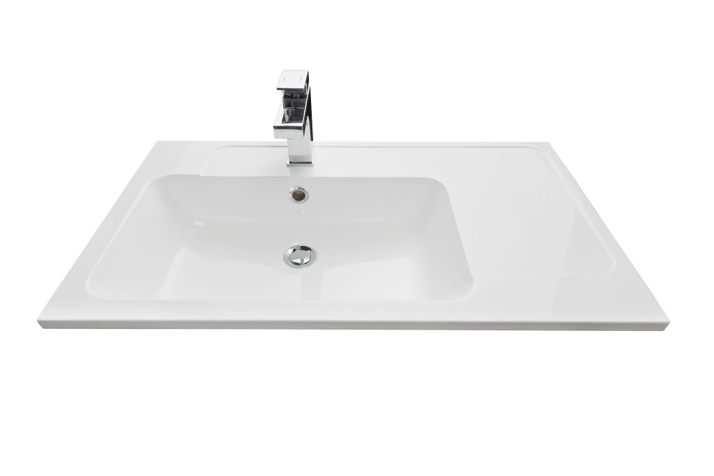 Der Marlin Waschtisch überzeugt mit seiner Robustheit und seiner pflegeleichten Handhabung. Das Mineralmarmorbecken ist mit einer Armaturbohrung und einem Überlauf ausgestattet. Wahlweise können Sie das Waschbecken mit Ablagefläche rechts oder links auswählen. Der passende Waschtischunterschrank verfügt über zwei Auszüge und einem seitlichen Regal. Das Badmöbel Set wird mit einem zweitürigen Spiegelschrank vervollständigt.