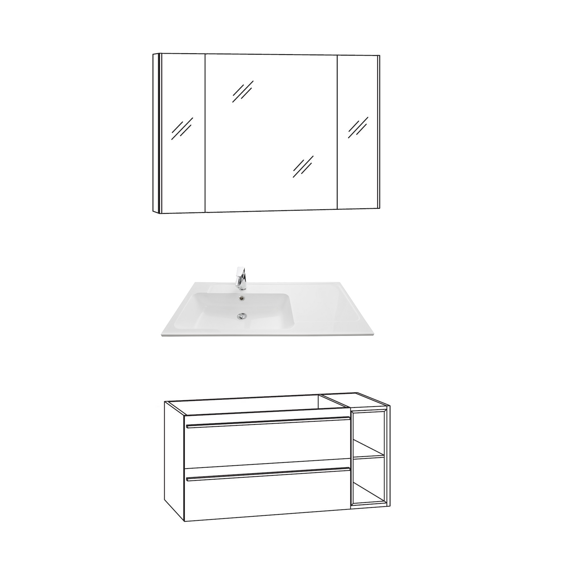 Marlin Bad 3250 Waschtisch mit Unterschrank 100 cm breit, mit Regal + Auszüge -24%