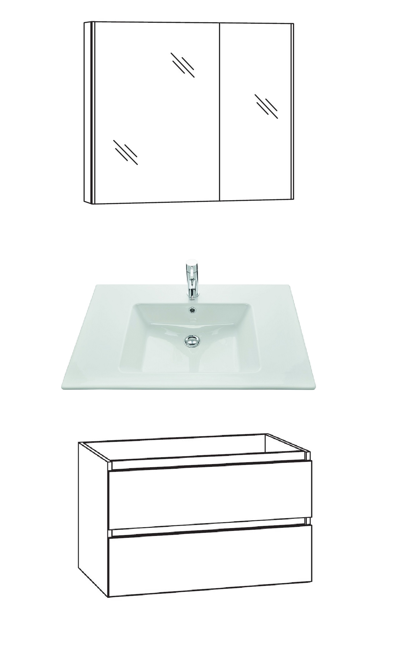 Marlin Bad 3290 Badmöbel Set 80 cm breit, mit Spiegelschrank - Variante 3