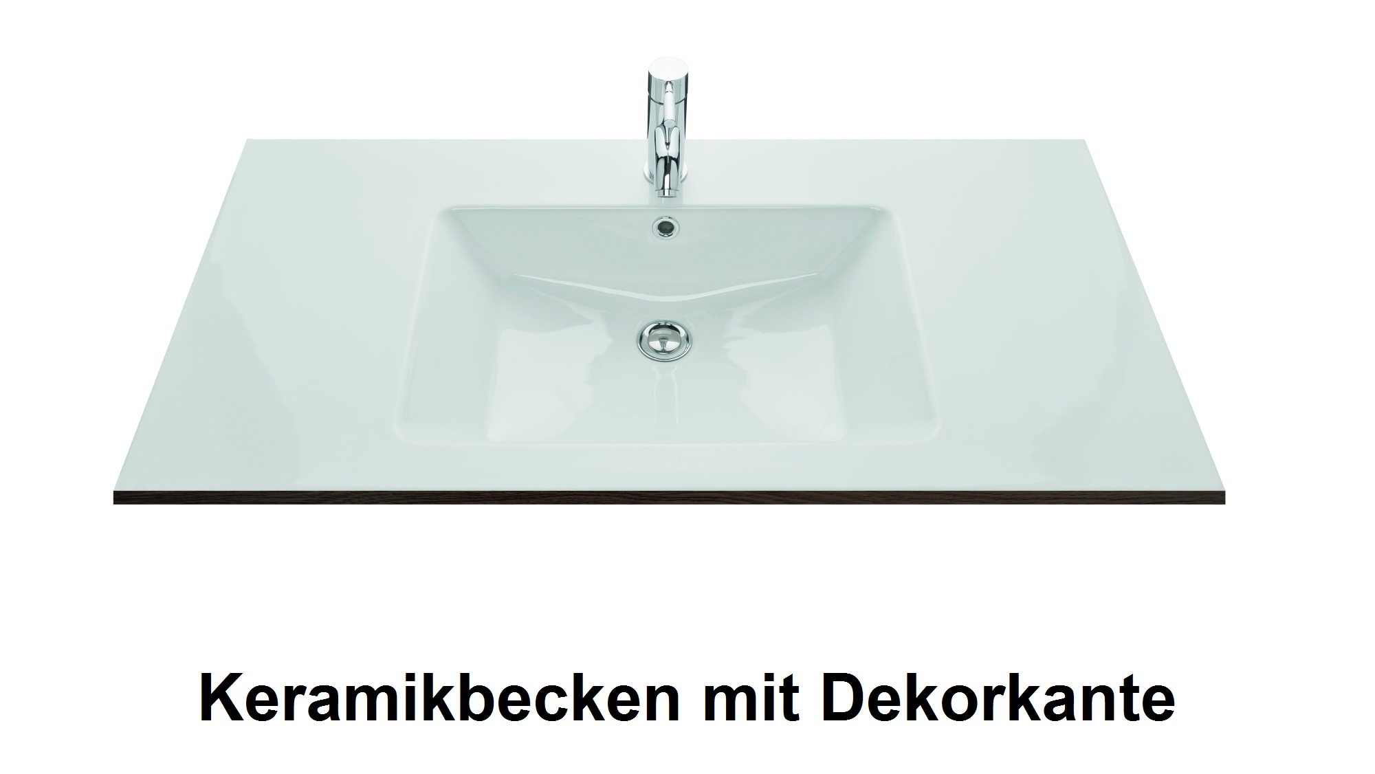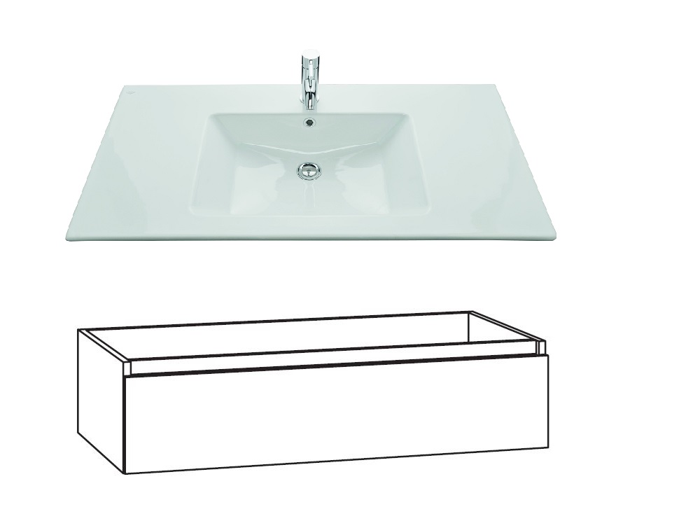 Das 101 cm breite Einzelbecken besitzt eine Hahnlochbohrung und ein Überlaufloch. Weiterhin wird das Becken aus hochwertiger Keramik hergestellt und überzeugt durch Strapazierfähigkeit und Robustheit. Unterhalb des Waschtisches befindet sich in der Grundausführung ein 97 cm breiter Waschtischunterschrank mit einem Schubkasten. Den Waschtisch-Unterschrank können Sie individuell auswählen, da Ihnen mehrere Unterschrankvarianten zur Verfügung stehen.