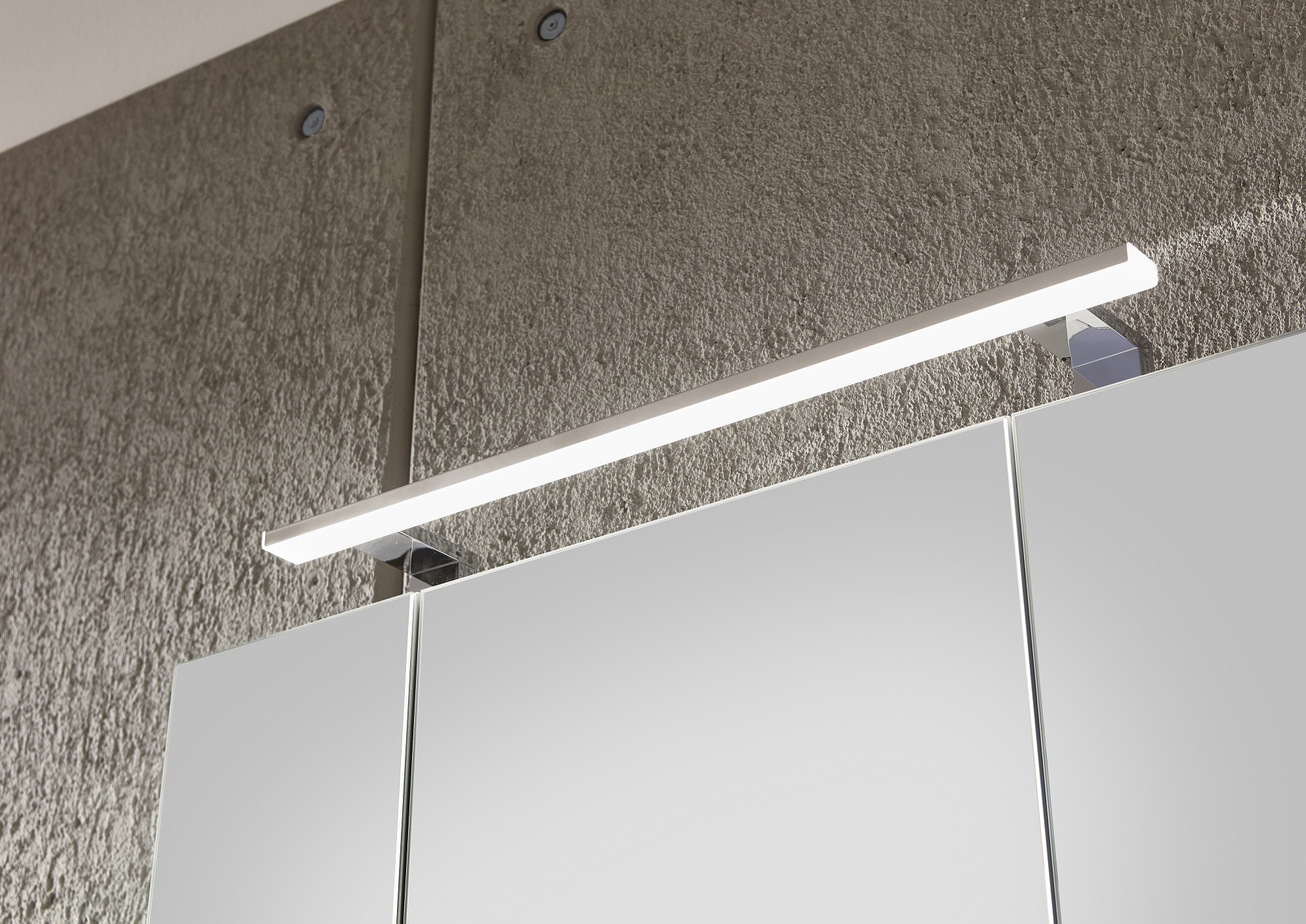 Die LED-Aufbauleuchte mit einer Lichtfarbe von 6000 Kelvin sorgt für zusätzliche Ausleuchtung des Raumes und wird über den Schalter im Inneren des Schrankes gesteuert.