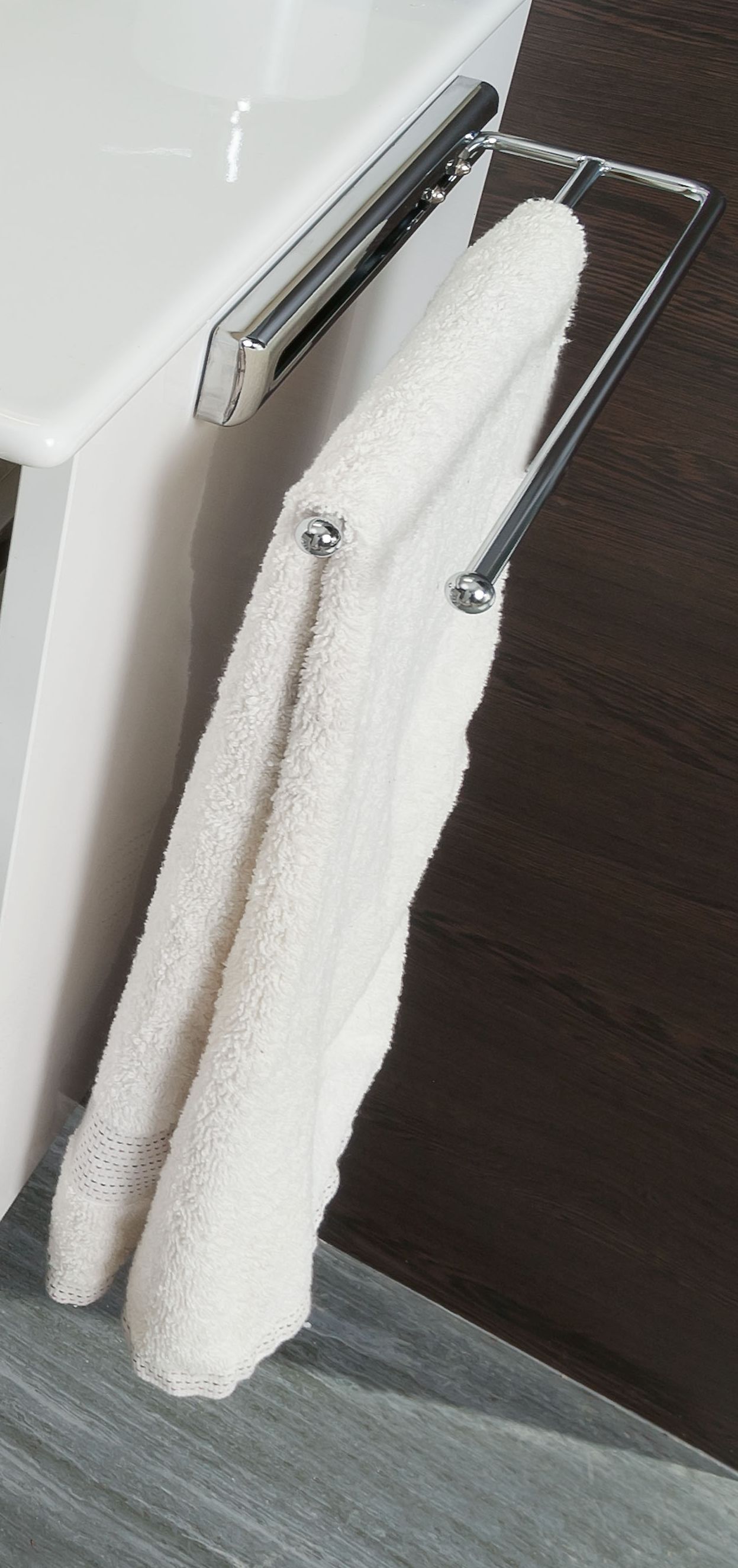 Der zweiarmige Handtuchhalter vom deutschen Badmöbelhersteller Marlin ist die ideale Ergänzung zu Ihrem Badmöbel-Set. Der Handtuchhalter wird am Korpus des Unterschrankes montiert, sodass Sie Ihr Handtuch immer griffbereit haben.