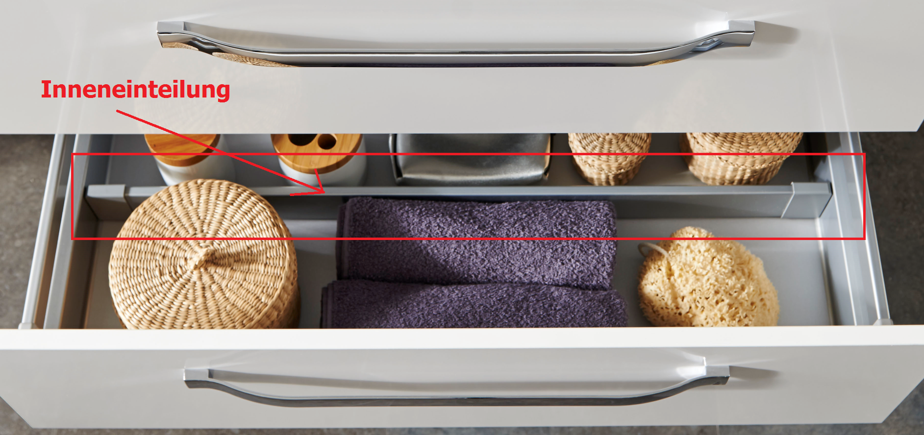 Die Marlin Bad Inneneinteilung IEG65 ist für Schubkästen mit der Breite 65 cm geeignet. Der Einsatz unterteilt Ihren Schublade in zwei große Elemente und sorgt somit für Ordnung.