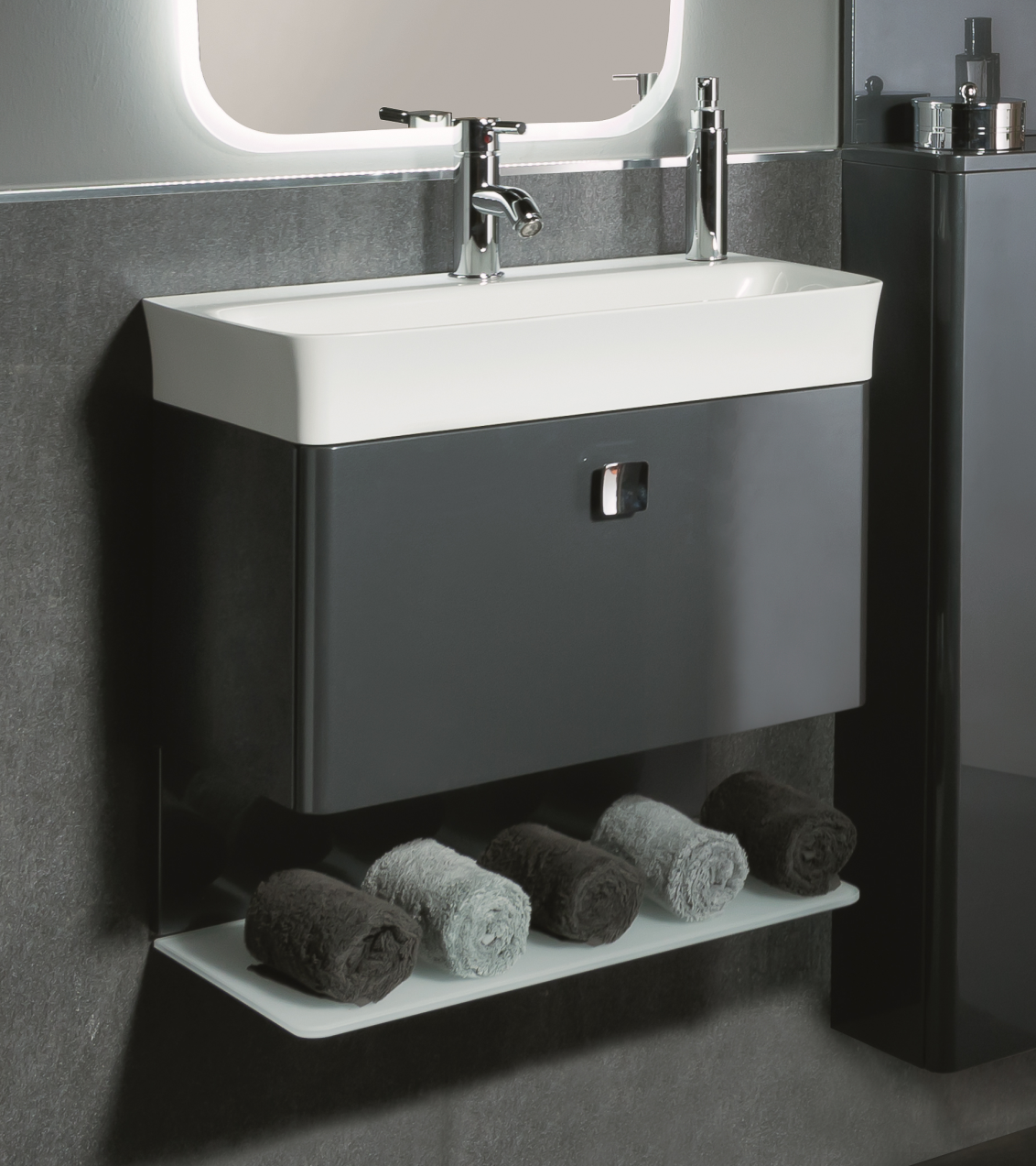 Marlin Gästebad 3010 Bad-Highboard 30 cm breit Anthrazit HBFT3F R - Sonderpreis - Sofort lieferbar -32%