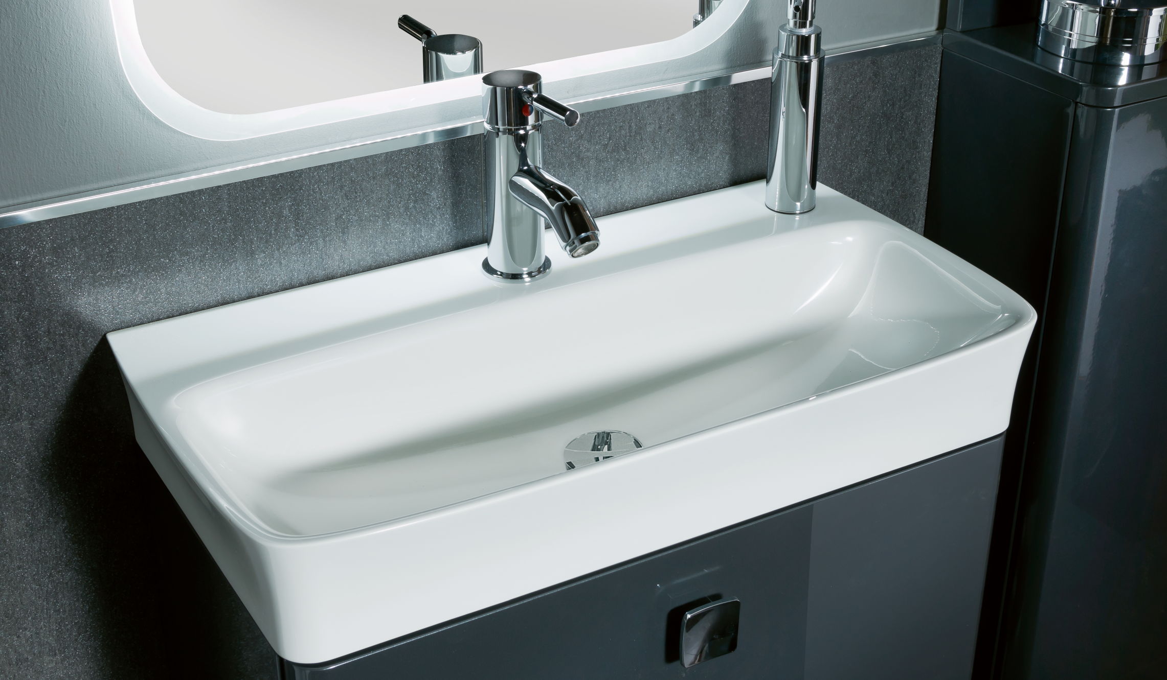 Abgebildete Dekorationsartikel, Beistellschränke sowie Armatur sind nicht im Lieferumfang enthalten und müssen ggf. separat bestellt werden.
