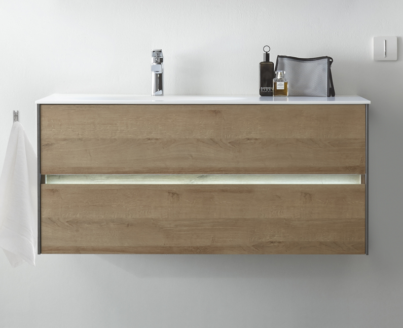 Die Besonderheit des Badmöbelprogrammes 6010 ist das grifflose Design der verschiedensten Schränke. Dies kann auch noch durch eine spezielle LED-Beleuchtung hervorgehoben werden. Gesteuert wird diese Grifffugen-Beleuchtung mit einem praktischen Bewegungssensor. Top-Modern und besonders praktisch!