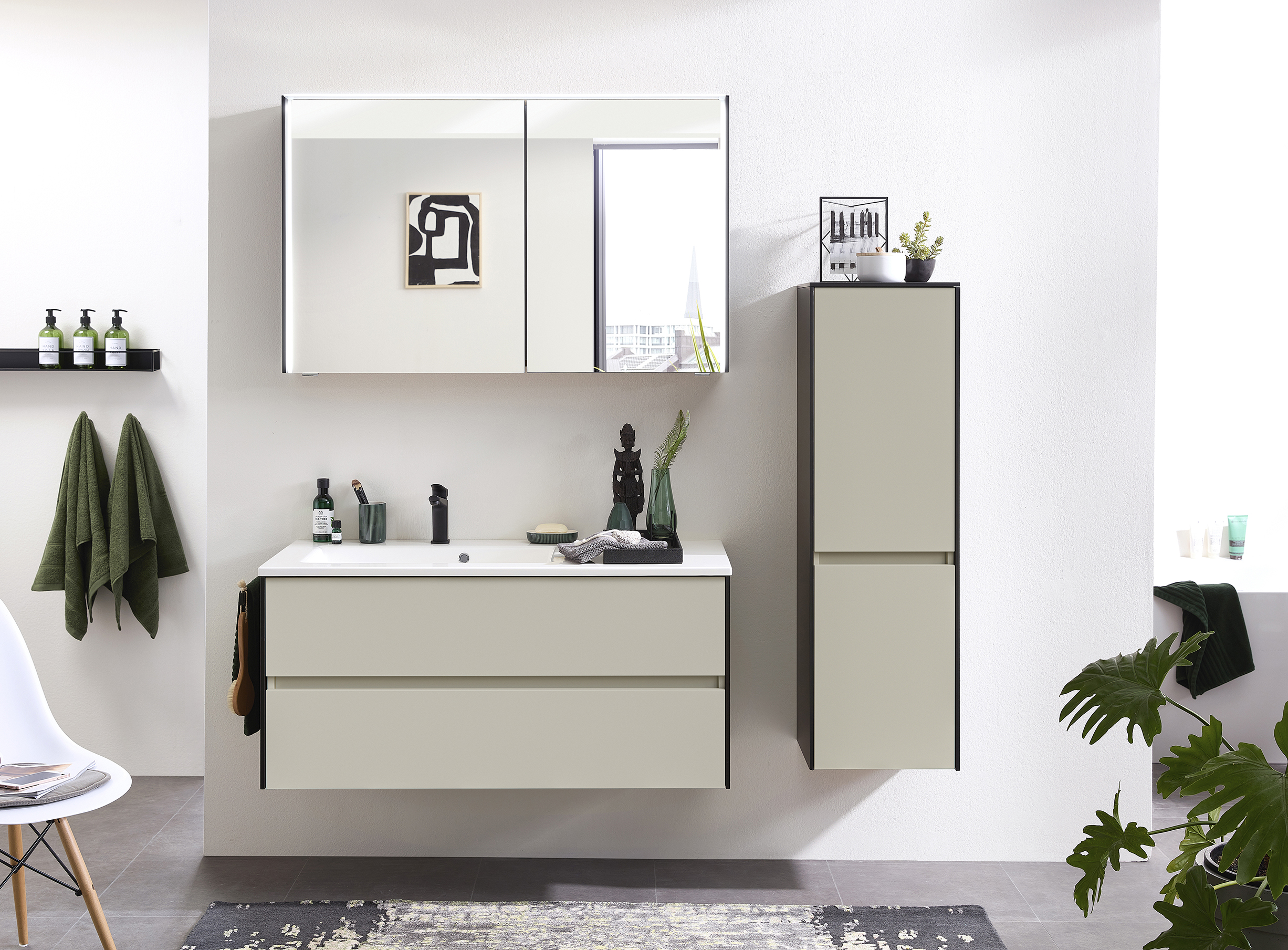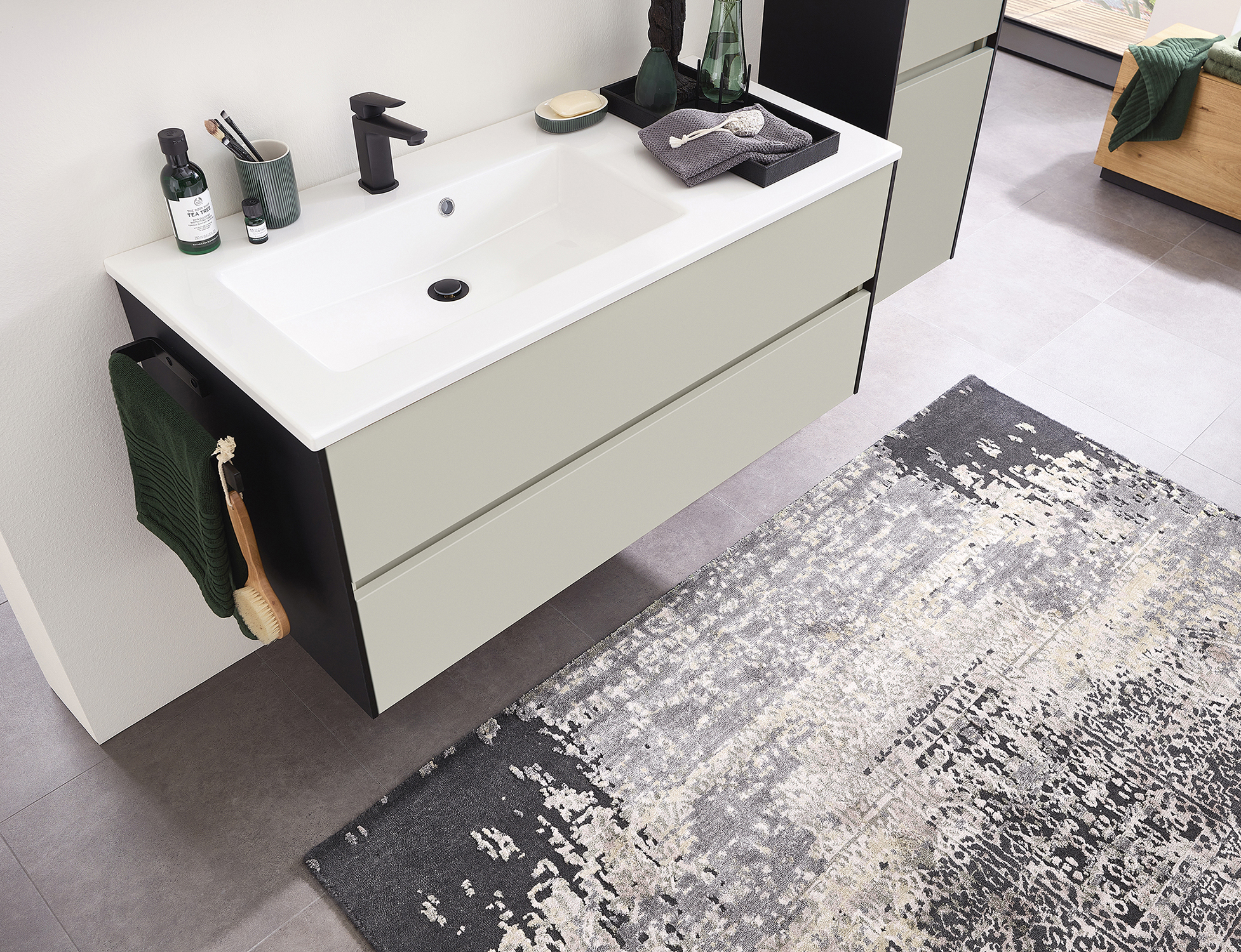 Abgebildete Dekorationsartikel, Beistellschränke sowie Armatur und Zubehörteile sind nicht im Lieferumfang enthalten und müssen ggf. separat bestellt werden.