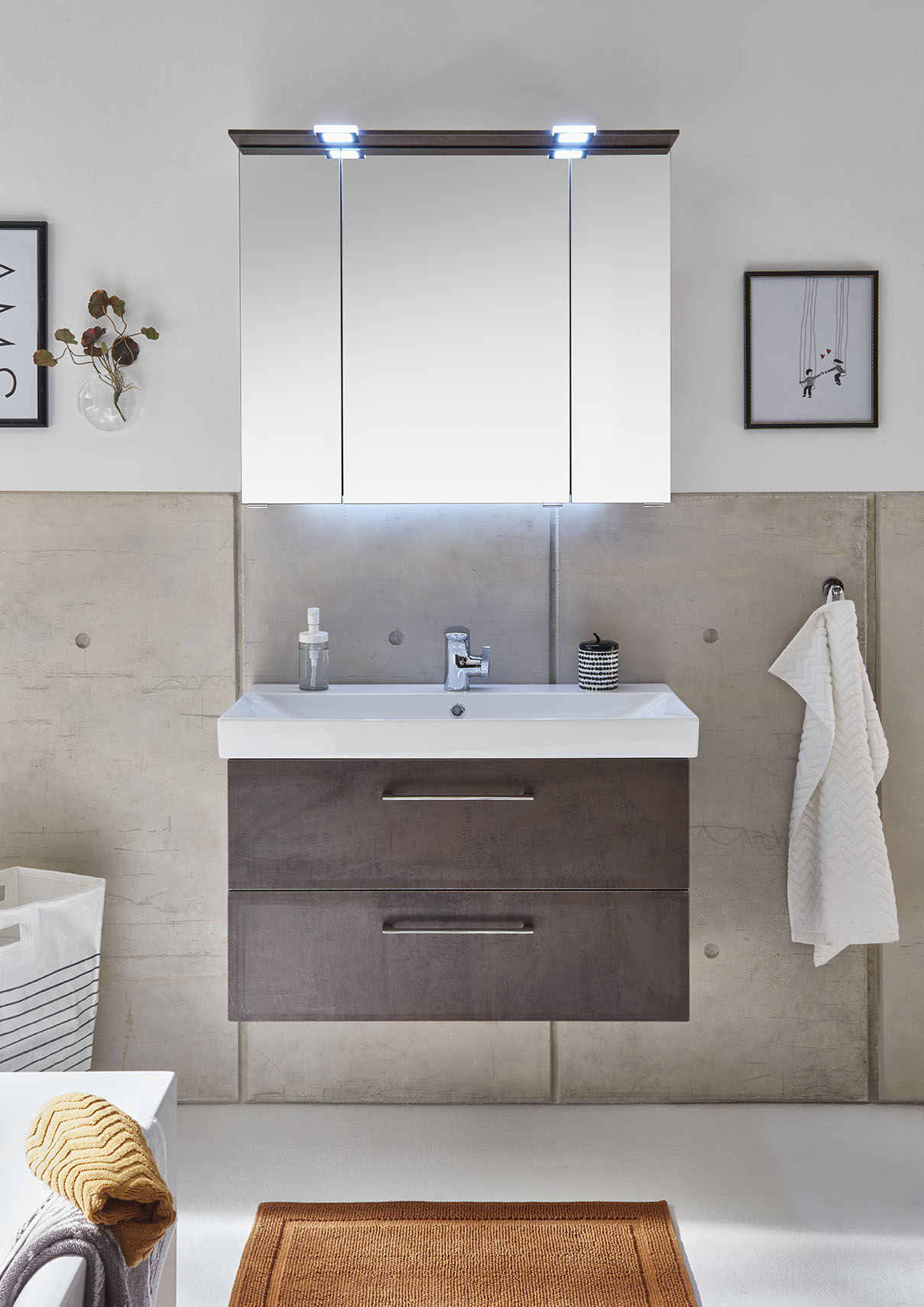 Abgebildete Dekorationsartikel, Beistellschränke sowie Armaturen sind nicht im Lieferumfang enthalten und müssen bei Bedarf separat bestellt werden.