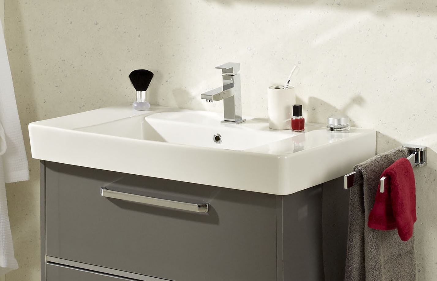 Abgebildete Dekorationsartikel, Beistellschränke sowie Armaturen sind nicht im Lieferumfang enthalten und müssen ggf. separat bestellt werden.