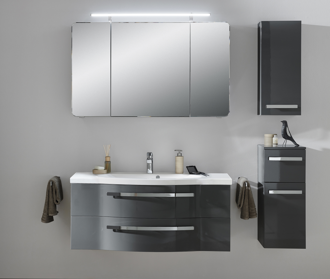 Abgebildete Dekorationsartikel, Beistellschränke sowie Armaturen sind nicht im Lieferumfang enthalten und müssen ggf. separat bestellt werden.