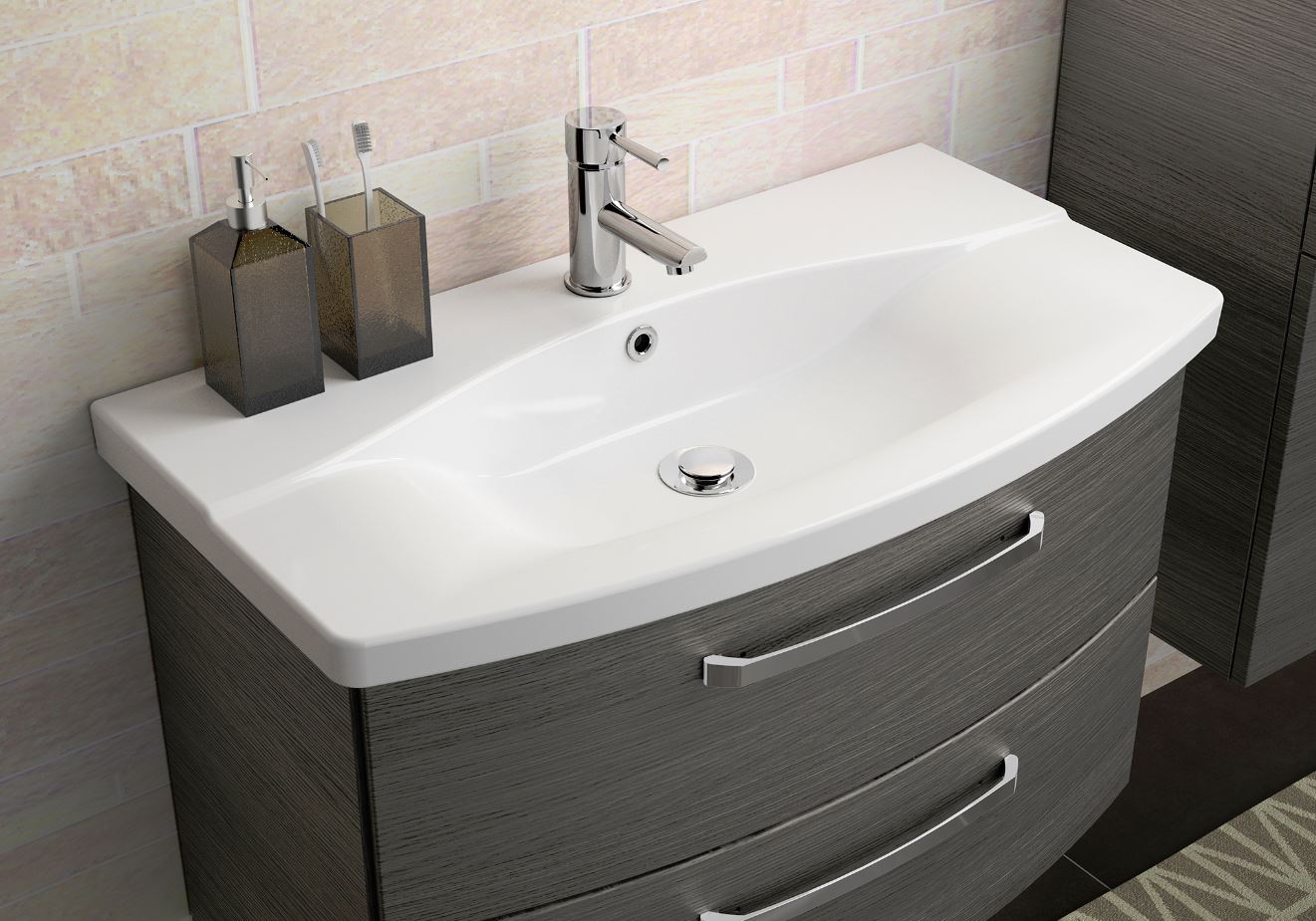 Abgebildete Dekorationsartikel, Beistellschränke sowie Armaturen sind nicht im Lieferumfang enthalten und müssen ggf. separat bestellt werden.