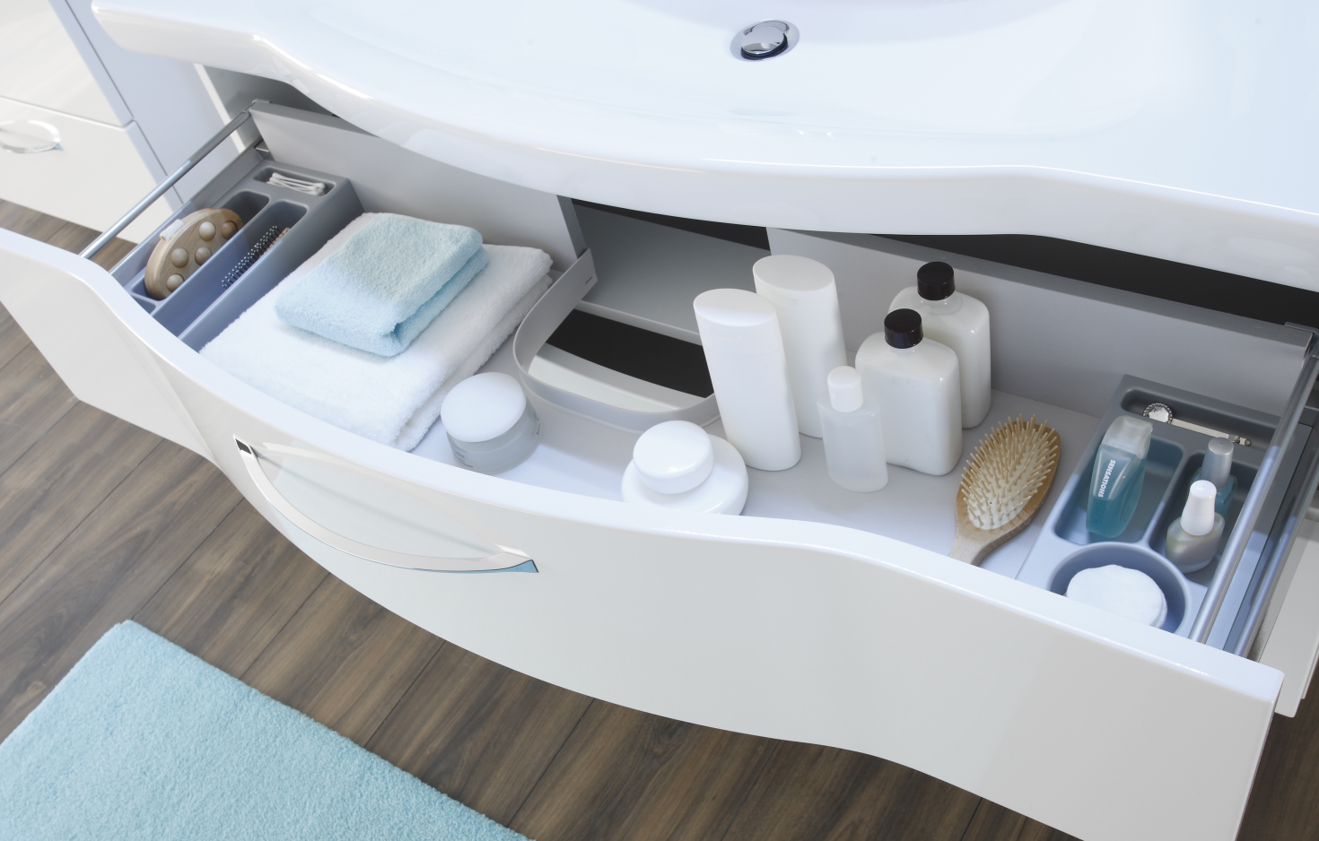 Der Pelipal 6005 Waschtischunterschrank besteht aus zwei großzügigen Schubkästen. Beide Auszüge sind mit modernster Beschlagtechnik ausgestattet, was ein absolut leises Schließen gewährleistet