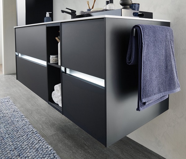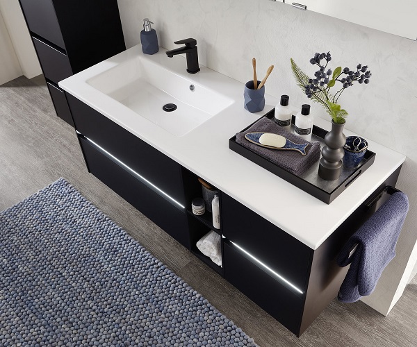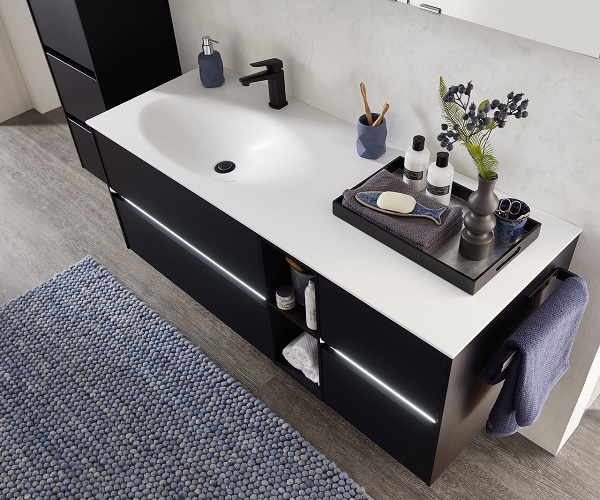 Die Besonderheit des Badmöbelprogrammes 6010 ist das grifflose Design der verschiedensten Schränke. Dies kann auch noch durch eine spezielle LED-Beleuchtung hervorgehoben werden. Gesteuert wird diese Grifffugen-Beleuchtung mit einem praktischen Bewegungssensor. Top-Modern und besonders praktisch! Sie wollen jedoch lieber altbewerte Griffe an Ihren Badmöbeln? Auch das kein Problem.