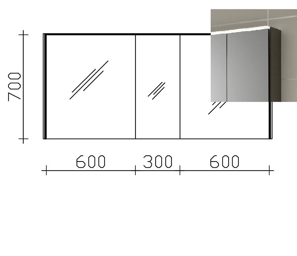 In dem geradlinigen, dreitürigen Spiegelschrank ist eine 14,4 Watt LED-Beleuchtung im Kranzboden eingearbeitet. Durch das leicht nach vorn angebaute Design wird Ihr 6010 Spiegelschrank optimal ausgeleuchtet und zaubert gleichzeitig ein warmes Licht in Ihre Badezimmer. Diese tolle LED-Leuchte wird durch ein Schalter-Steckdosen-Modul, welches sich im Inneren des Spiegelschrankes befindet gesteuert.