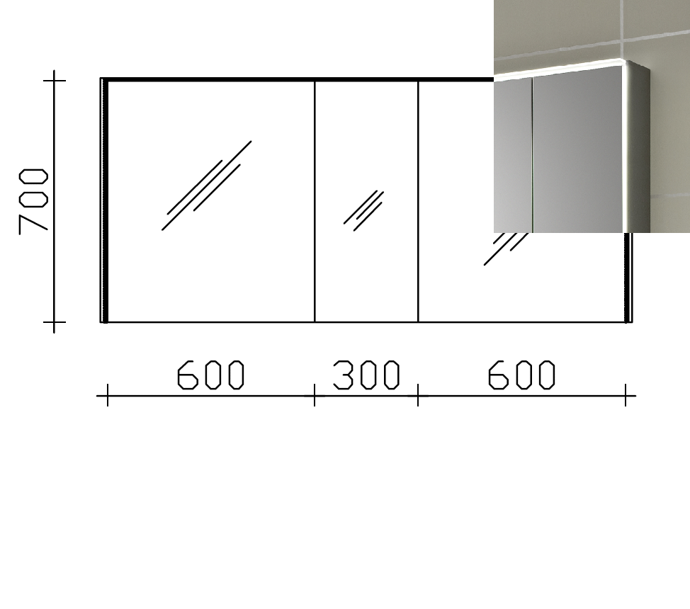 In dem geradlinigen, dreitürigen Spiegelschrank ist eine 14,4 Watt LED-Beleuchtung im Kranzboden und ein 6,7 Watt LED-Lichtprofil rechts und links eingearbeitet. Durch das leicht nach vorn angebaute Design wird Ihr Solitaire 6010 Spiegelschrank optimal ausgeleuchtet und zaubert gleichzeitig ein warmes Licht in Ihre Badezimmer. Diese tolle LED-Leuchte wird durch ein Schalter-Steckdosen-Modul, welches sich im Inneren des Spiegelschrankes befindet gesteuert.