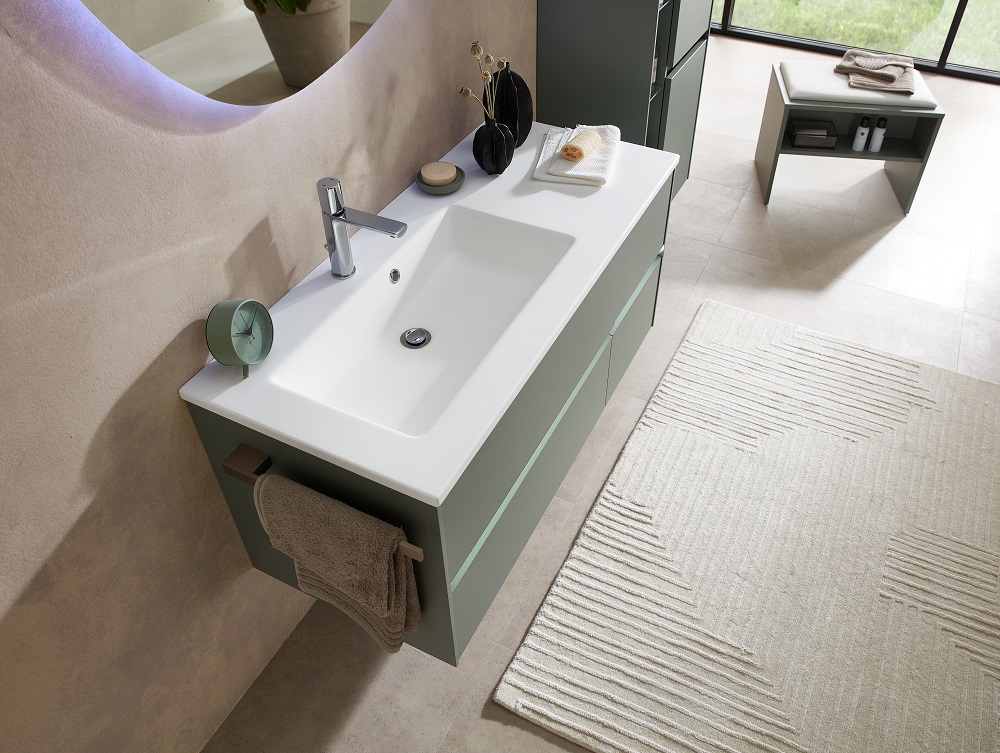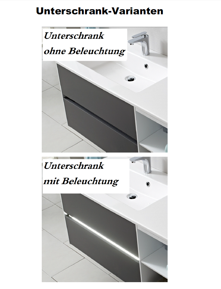 Die Besonderheit des Badmöbelprogrammes 6010 ist das grifflose Design der verschiedensten Schränke. Dies kann auch noch durch eine spezielle LED-Beleuchtung hervorgehoben werden. Gesteuert wird diese Grifffugen-Beleuchtung mit einem praktischen Bewegungssensor. Top-Modern und besonders praktisch!