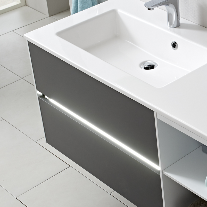 Ein besonderes Merkmal des Badprogrammes Pelipal 6010 ist die Auswahl einer Grifffugenbeleuchtung. Diese wird mit einem modernen Bewegungssensor gesteuert und setzt sofort ein kleines Highlight in Ihre Badezimmer!