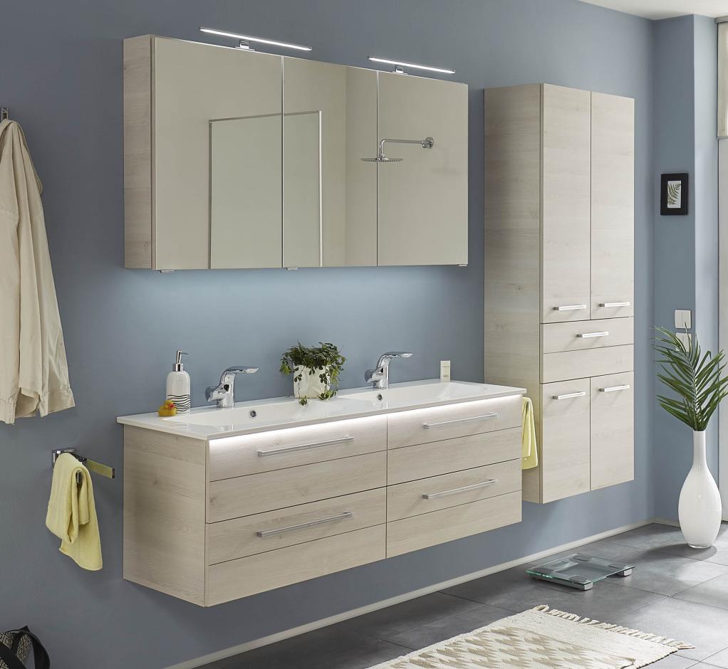 Puris d.light Badmöbel Set 123,2 cm breit kombinierbar, mit Doppelwaschtisch -35%