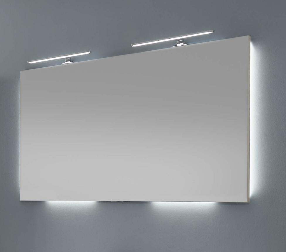 Das Set beinhaltet einen wunderschönen Flächenspiegel, welcher einer tollen LED-Beleuchtung versehen sind. Ein Highlight in jedem Badezimmer! Ein schlichter weißer Mineralmarmor-Doppel-Waschtisch mit dem passendem Waschtischunterschrank rundet diese Kombination perfekt ab. Die LED-Lichter des Flächenspiegels sind so angebracht, dass der Lichtschein wunderschön hinter dem Spiegelglas hervortritt. Ein tolles Lichtkonzept, das Waschplatz, Wand und Umgebung effektvoll beleuchtet. In Türen und Auszügen sind modernste Scharniere und Dämpfungen verbaut, die die Bewegungsqualität sowie absolut leises Schließen gewährleisten. Außerdem sind die Rückwände der Möbel nach innen gesetzt, damit zwischen Schränken und Wand genügend Raum für ausreichend Luftzirkulation bleibt. Die farbliche Gestaltung der Badezimmermöbel ist persönliche Geschmackssache. Zur Auswahl stehen Ihnen hier verschiedene Front- und Korpusdekore. Edle Hochglanzfarben oder warme Holzdekore - ganz nach Ihren Wünschen!