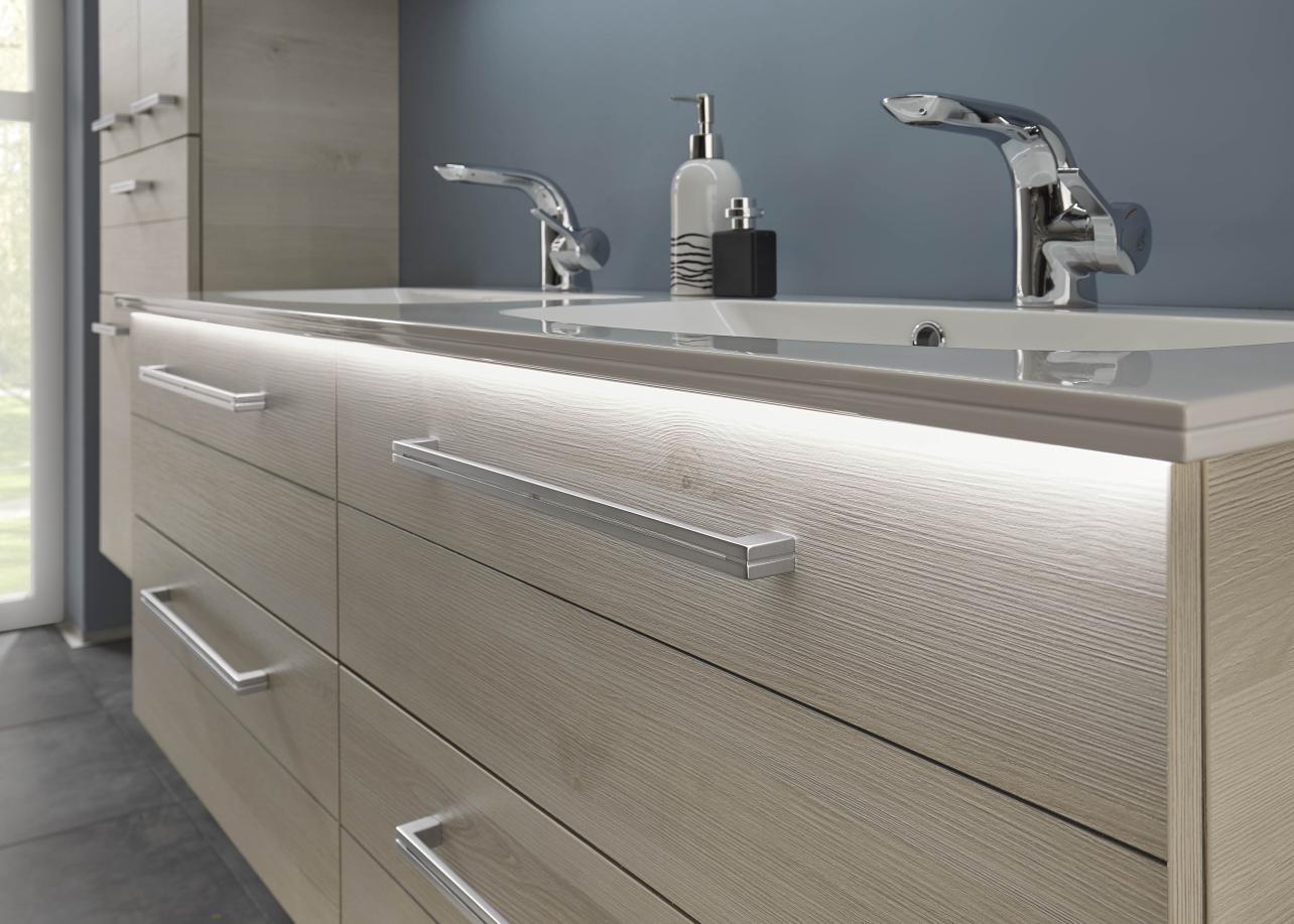 Stilvolle Badezimmermöbel brillant beleuchtet! Mit dem 6025 Set 4.3 von Pelipal setzen Sie fantastische Lichtakzente.