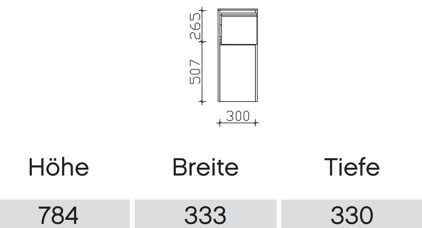 Breite: 33,3 cm / Höhe: 78,4 cm / Tiefe: 33,0 cm