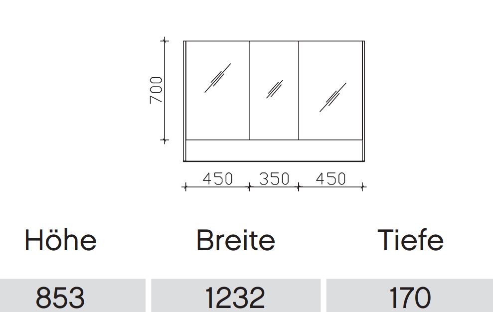 Mit dem Pelipal 6040 Spiegelschrank 123 cm breit mit Ablagefach / für Doppelwaschtisch SDNE00212 erhalten Sie passend zu dieser Serie einen komfortablen und modernen, einfach verspiegelten Spiegelschrank mit 3 praktischen Drehtüren sowie 6 Glaseinlegeböden und einem zusätzlichen Ablagefach unterhalb der Spiegelfläche. Dieser Bad-Spiegelschrank ist die ideale Ergänzung zum Doppelwaschtisch-Set in der Breite 121 cm. Selbstverständlich stehen Ihnen für den Korpus des Spiegelschrankes dieselben wunderschönen Farben der Serie 6040 zur Verfügung. Optional können Sie diesen Spiegelschrank mit einer Aufsatzleuchte versehen. Ein toller Spiegelschrank darf in keinem gut ausgestatteten Badezimmer fehlen. Hier bei Badmoebel-1.de stehen Ihnen eine Vielzahl an wunderschönen Spiegelschränken, Flächenspiegeln sowie die ganze Vielfalt des Modelles 6040 zur Verfügung.
