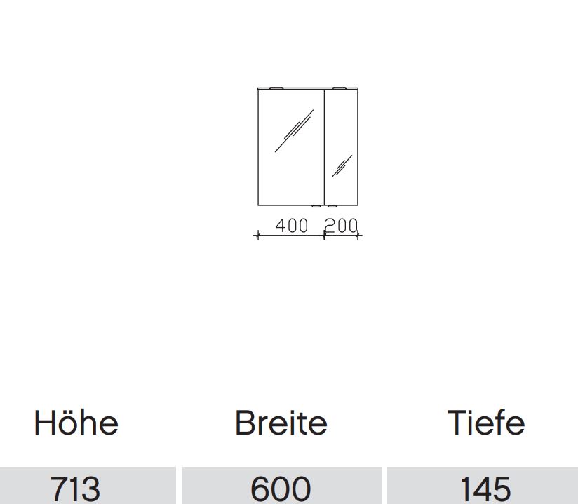 Breite: 60 cm / Höhe: 71,3 cm / Tiefe: 14,5 cmAchtung: der Spiegelschrank ist exklusive der abgebildeten LED-Waschplatzbeleuchtung.