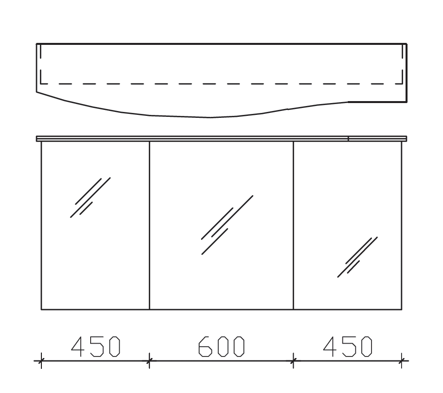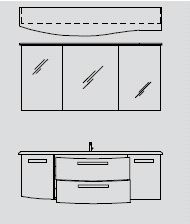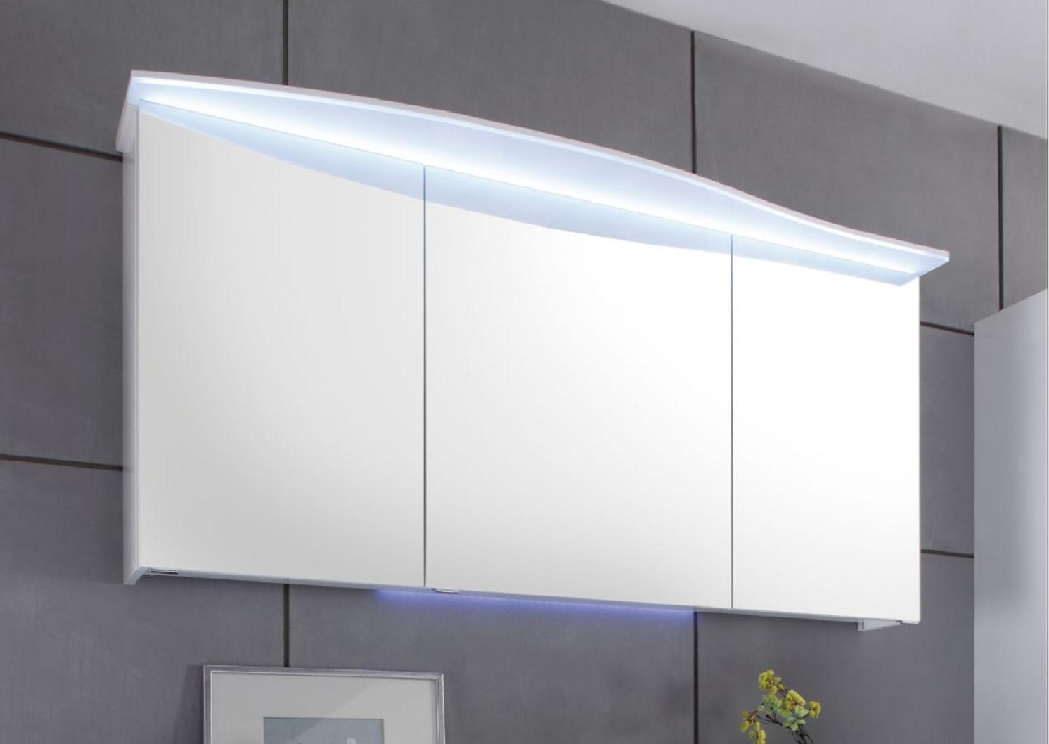 Der Spiegelschrank RD-SPS 21 aus der Serie 7005 von Pelipal sticht durch seine wunderschöne, geschwungene Kranzbodenbeleuchtung sofort ins Auge und ist der Hingucker in Ihrem Badezimmer. Der dreitürige Spiegelschrank hat eine Breite von 150 cm und eignet sich ideal für ein großes Badmöbelset. Die Spiegeltüren sind auf einer Trägerplatte befestigt und können mit Griffen geöffnet werden. Der Türanschlag = Scharnierseite ist bei diesem schönen Spiegelschrank rechts, links und links. Die beiden äußeren Türen ein bisschen schmäler mit einer Breite von 45 cm, die mittlere Spiegeltüre hat eine Breite von 60 cm. Der Pelipal 7005 Spiegelschrank ist im Inneren mit zwei Mittelwände geteilt und kann mit je zwei Glasfachböden hinter den Spiegeltüren individuell untergliedert werden. Das Highlight ist hier die originelle Kranzbodenbeleuchtung. Hochwertige LEDs eingearbeitet in einem geschwungenen Kranzboden. Die Form angepasst an die Auswahl der Beckenform.