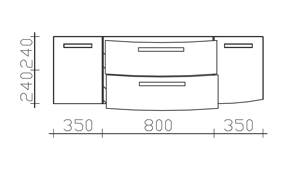 - Pelipal 7005 Waschtischunterschrank RD-WTUSL 03 / RD-WTUSL 05 hat eine Breite von 150,6 cm und besteht aus zwei großzügigen Schubkästen mittig und links und rechts davon eine praktische Drehtür.