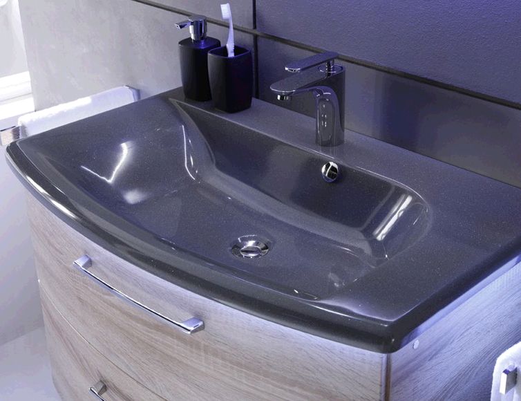 Der Badmöbelhersteller Pelipal hat für diese wunderschönen Badezimmermöbelserie ein besonderes Becken entworfen. Die Beckenform des Pelipal Mineralmarmorwaschtisches RD-MMWTR 65-845 ist das Markenzeichen der Serie 7005. Eine Seite leicht abgerundet, die andere Seite eckig abgeschlossen. Das Becken fliest weich hinab, links und rechts davon jeweils eine kleine Ablagefläche.