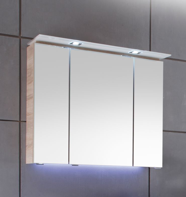 Wer noch mehr Licht am Waschplatz benötigt, hat außerdem die Möglichkeit eine LED-Zusatzbeleuchtung zum Spiegelschrank hinzu zu bestellen. Die Zusatzbeleuchtung wird unterhalb des Spiegelschrankes angebracht und beleuchtet Ihren Waschtisch und setzt ihn dadurch nochmals besonders in Szene.