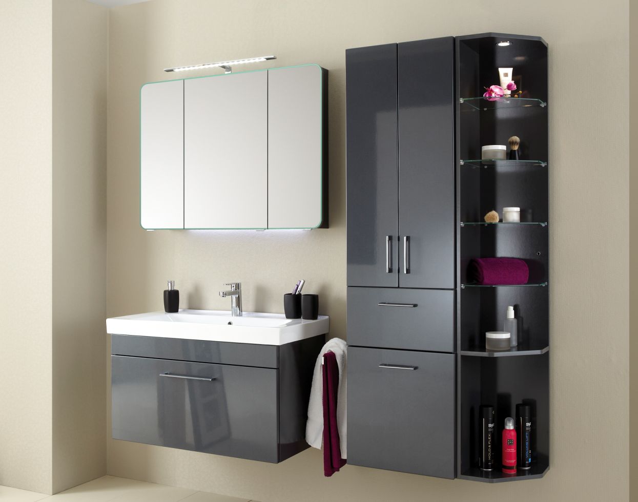 Pelipal Pineo Bad-Hochschrank 30 cm breit Sangallo Grau PN-HS 01 - Sofort lieferbar - Sonderpreis -27%