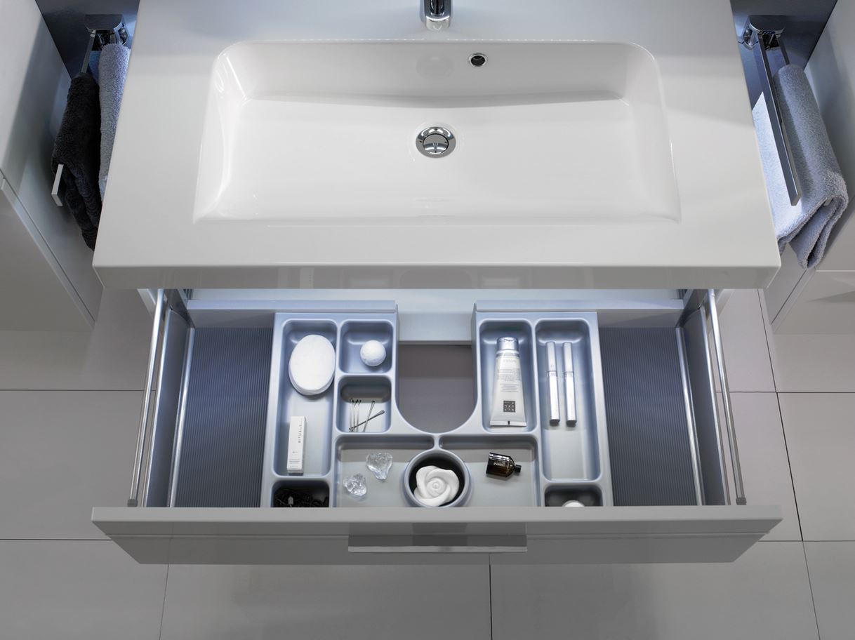 Der Pelipal Balto Unterschrank ist mit zwei Auszügen inklusive Softeinzug ausgestattet und hat eine Breite von 88 cm. Der obere Auszug ist mit einem zweiteiligen Kosmetikeinsatz ausgestattet, der untere Auszug bietet einen durchgehenden geräumigen Stauraum für Ihr Badezimmer-Zubehör. Für ein besonders angenehmes Ambiente in Ihrem Badezimmer, bietet Pelipal im seinem Balto Möbelprogramm, optional für die Schattenfüge zwischen Waschtisch und Unterschrank eine LED-Beleuchtung inklusive Bewegungssensor zur Auswahl an.