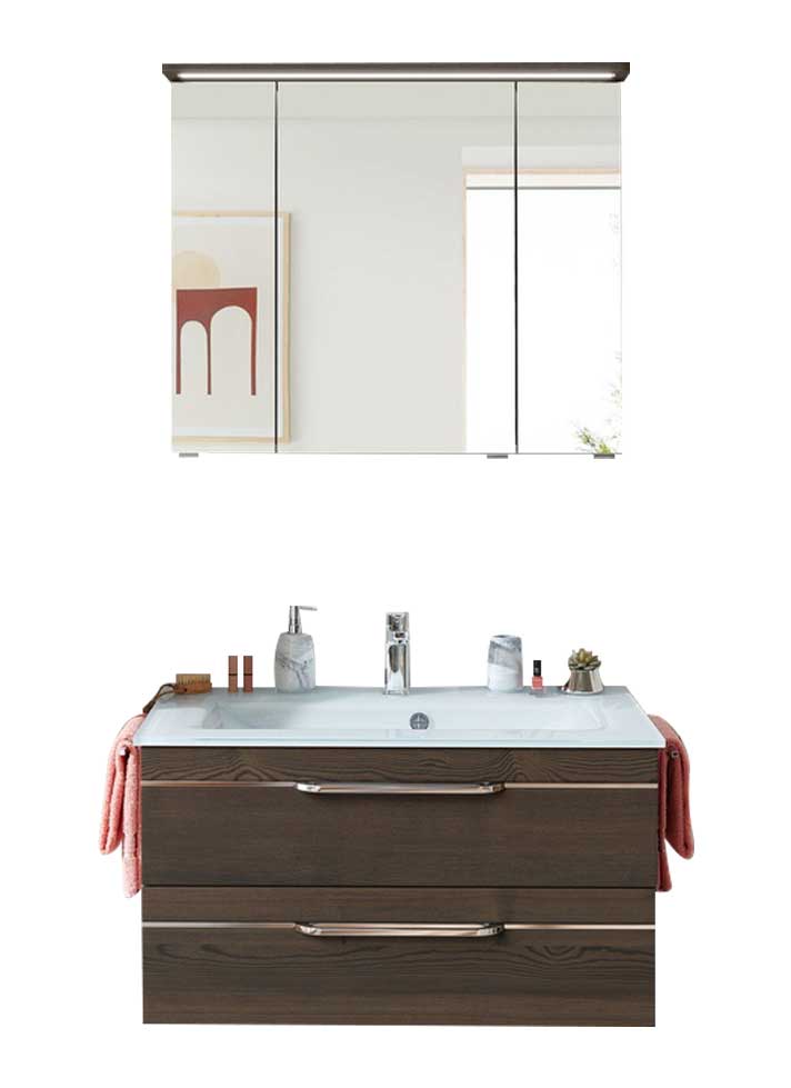 Pelipal 6005 Badmöbel Set inkl. Spiegelschrank mit Aufsatzleuchte - 100 cm -45%