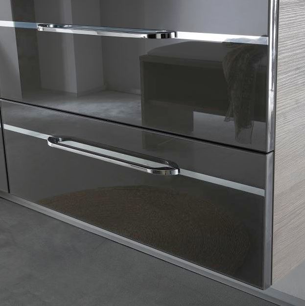 Für die Gestaltung von Korpus und Front Ihrer neuen Pelipal Balto Badmöbel steht Ihnen eine große Palette an Oberflächenfarben und Ausführungen zur Verfügung. Moderne Lackfarben oder warme Holztöne, Sie haben die Wahl. Ein absolutes Highlight der Serie Balto sind des Weiteren die Einlagen in den Fronten der Waschtischunterschränke, welche es in Chrom, Schwarz und Holzfarben gibt und die Griffe besonders schön zur Geltung bringen. Mit oder ohne Einlagen, Sie entscheiden. Für noch mehr Individualität haben Sie außerdem die Wahl zwischen den Griffvarianten in Chrom Glanz, Schwarz Matt und Massivholz.