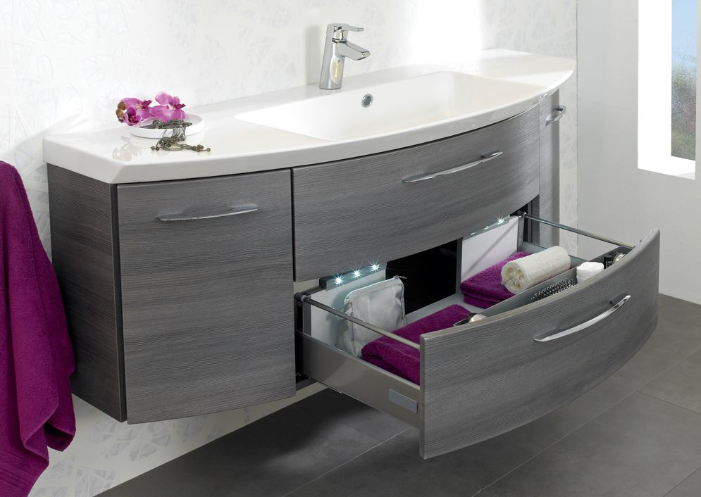 Dazu passend immer ein Pelipal Waschtischunterschrank in der gleichen Breite. Dieser ist in der Cassca Badezimmerserie wählbar mit einem großen oder zwei kleineren Auszügen, sowie alternativ mit einer wunderschönen, warmen LED Unterbodenbeleuchtung. Die Unterbodenbeleuchtung lässt sich mit einem bequemen Bewegungssensor steuern.