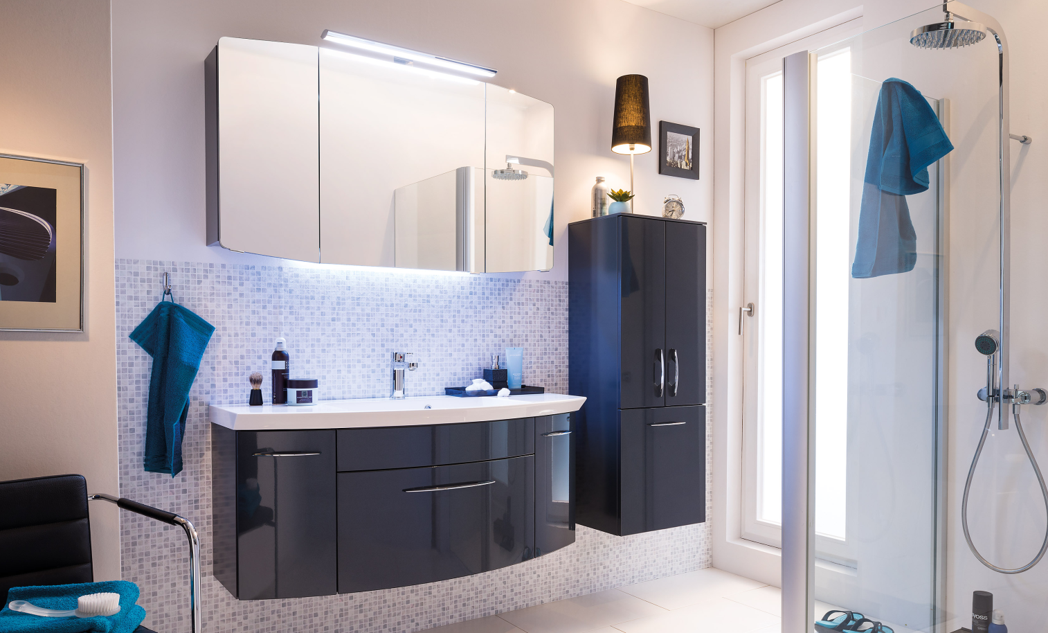 Abgebildete Dekorationsartikel, Beistellschränke und Armaturen sind nicht im Lieferumfang von Pelipal Cassca Badmöbeln enthalten und müssen separat bestellt werden!
