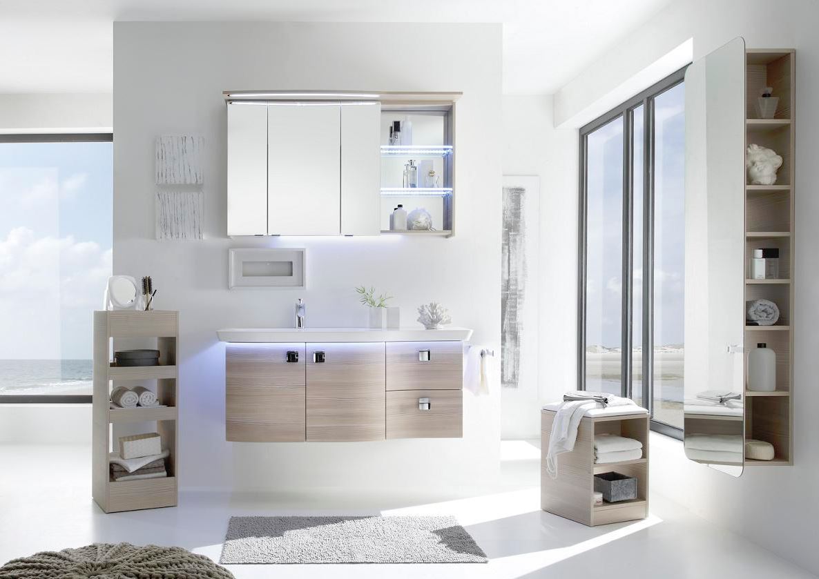 Puris 4Landa - Badmöbel Set mit Einzelwaschtisch und Spiegelschrank - Sofort lieferbar - Sonderpreis -18%