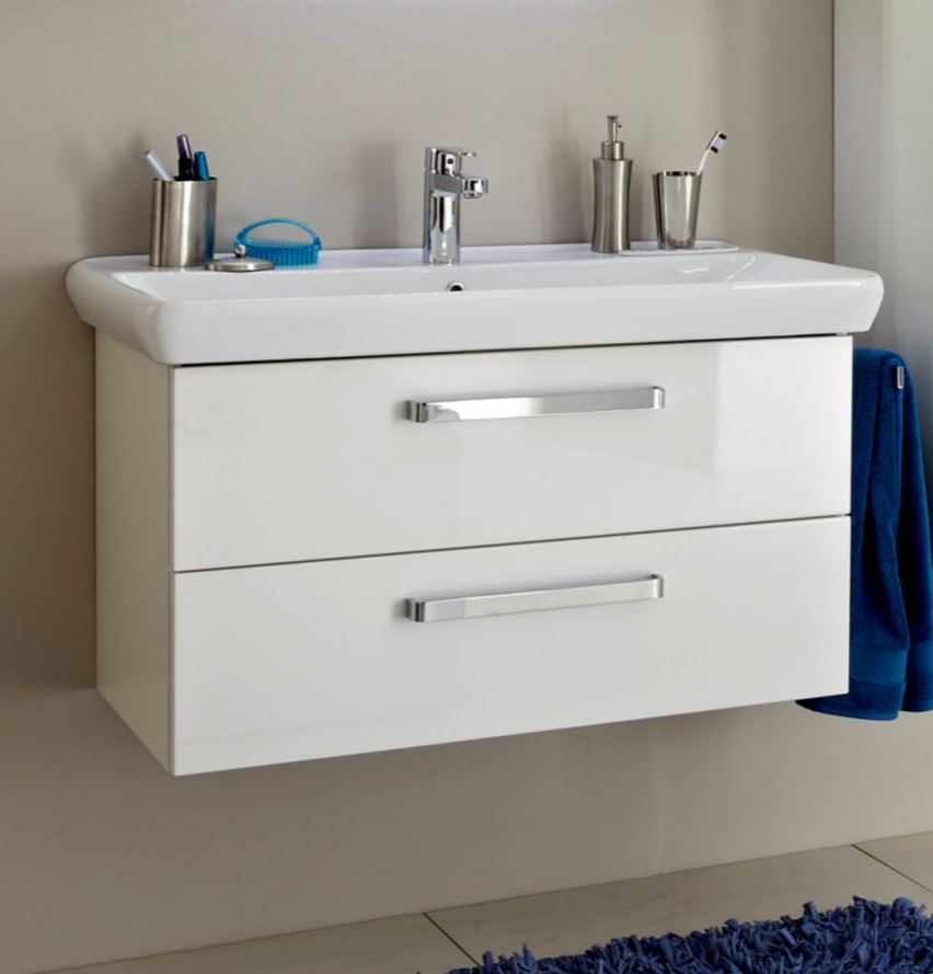 Viele Farben, schöne Formen und hochwertige Materialien, mit dem Pelipal Pineo Waschtisch mit Unterschrank Set in einer Breite von 97 cm bleiben keine Wünsche offen. Das Pelipal Pineo Badmöbel Set und besteht aus dem Pineo Keramik Waschbecken Belo SWT 201201-970 oder Girona SWT 201202-920 und dem Pineo Waschtisch-Unterschrank mit zwei Auszügen PN-WTUSL 06.